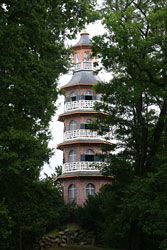 Wir überqueren eine chinesische Brücke in Oranienbaum |